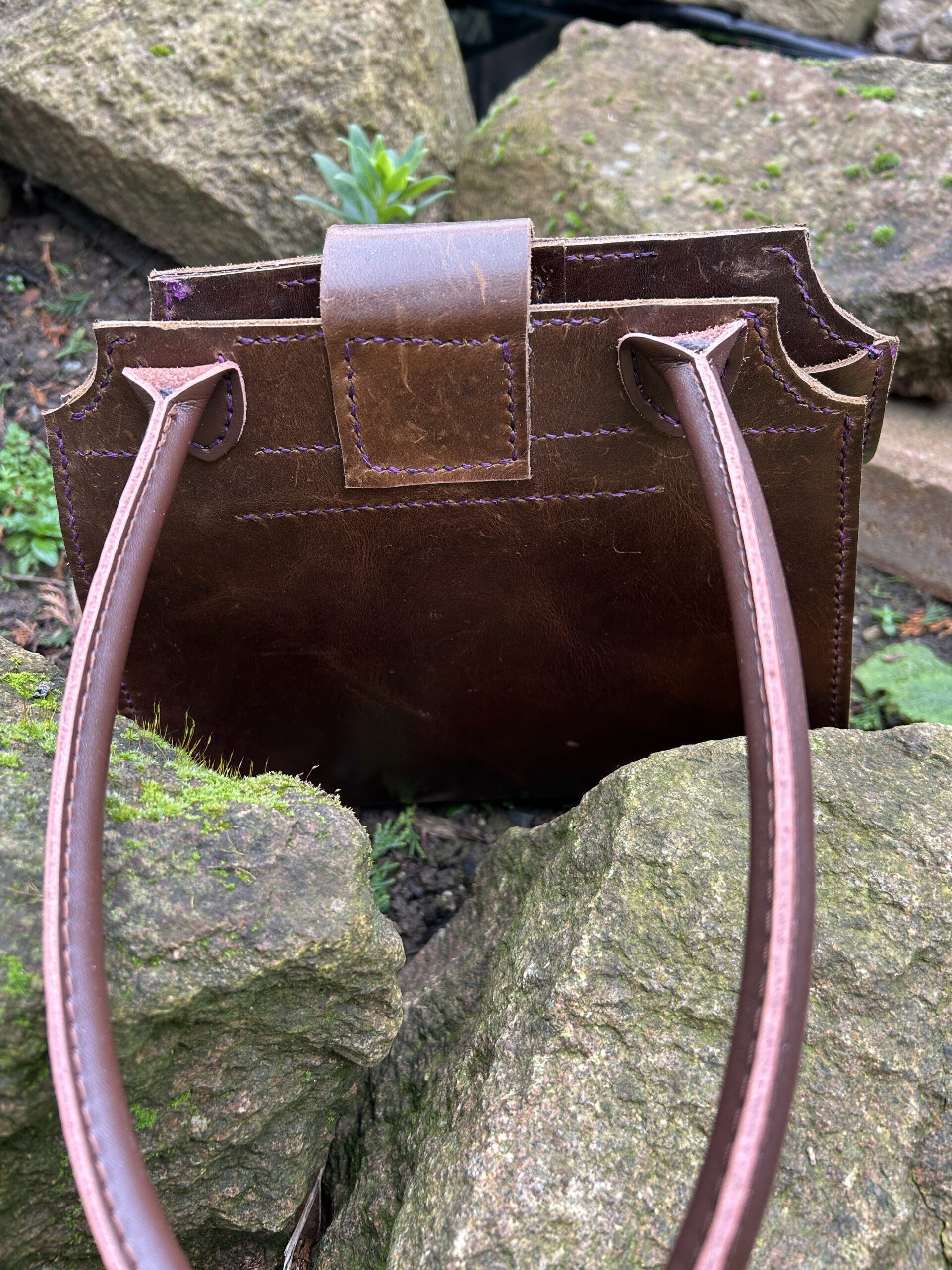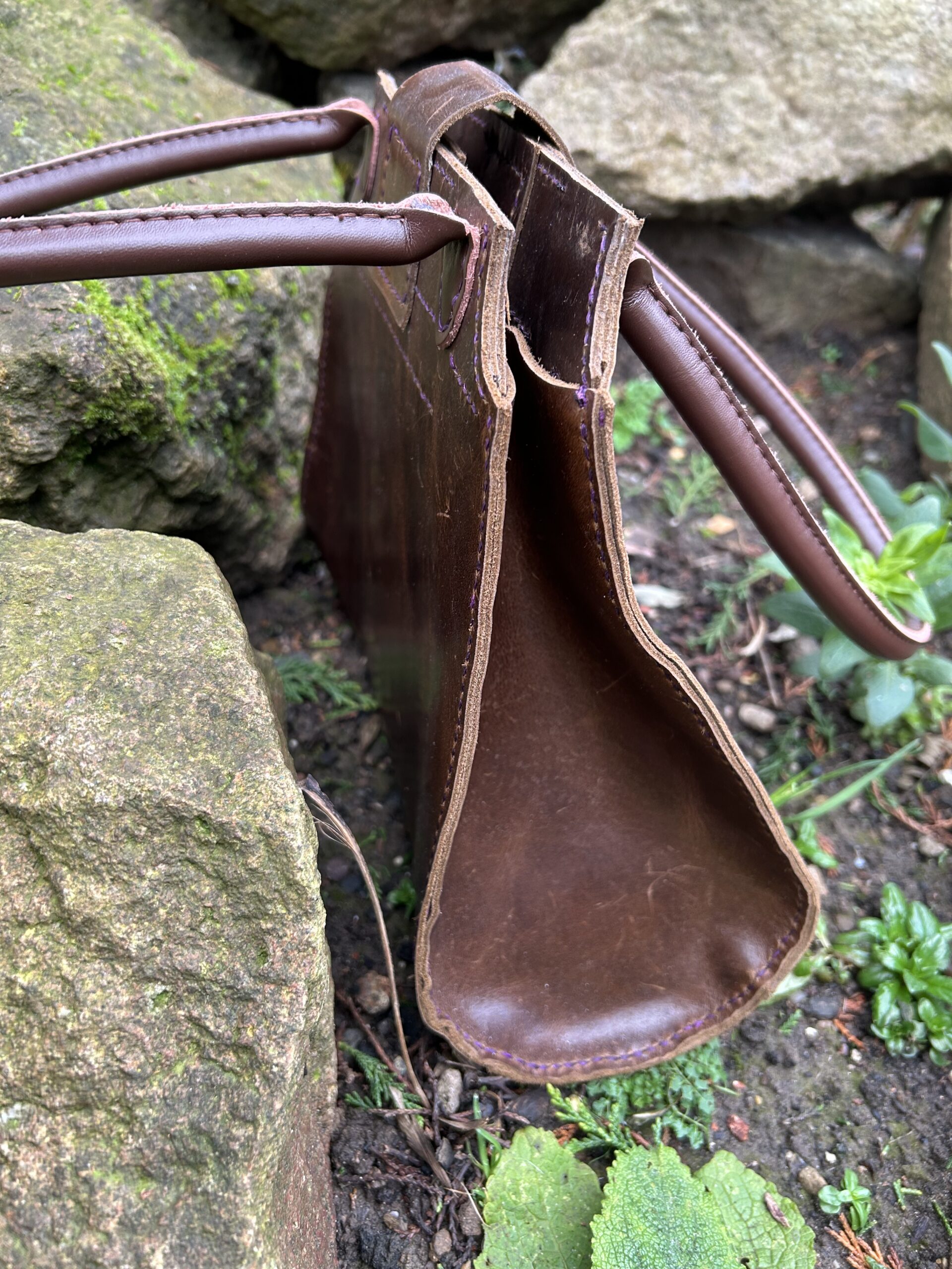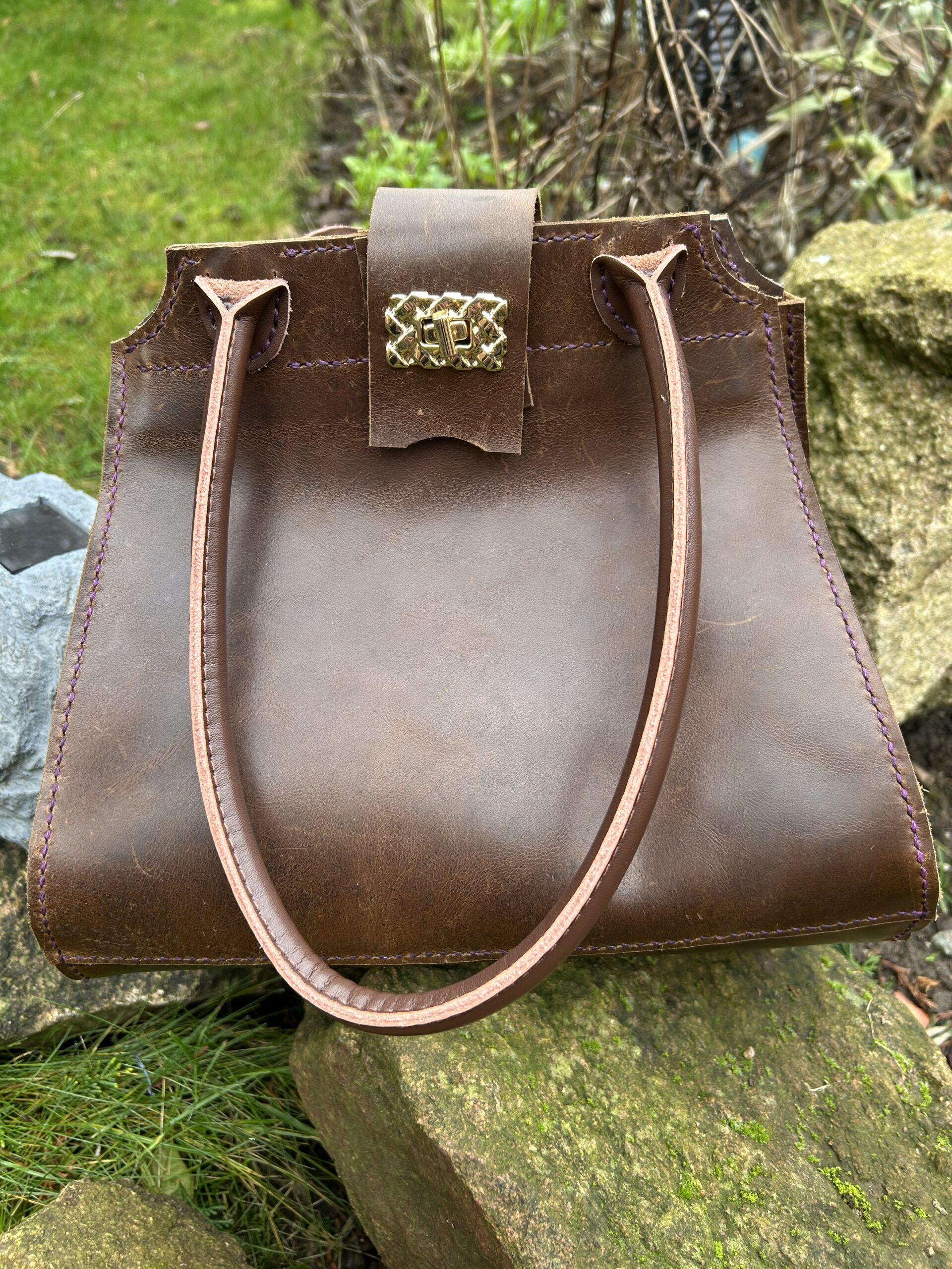 Dark Brown Leather Teardrop Handbag