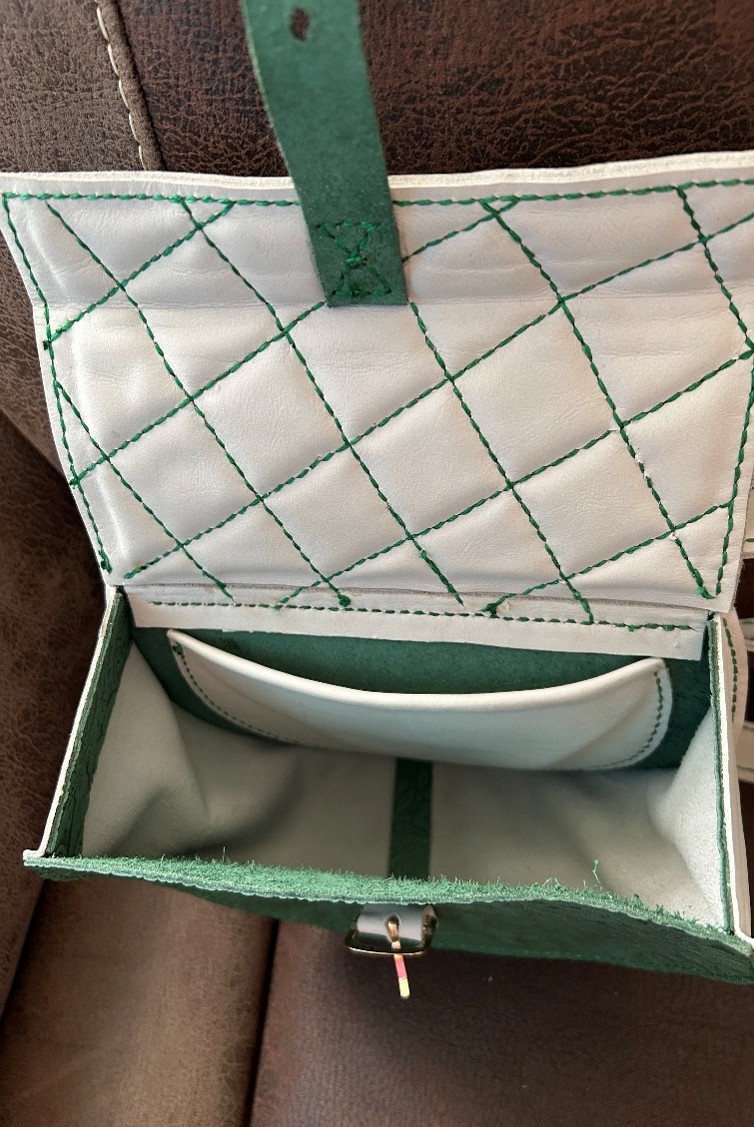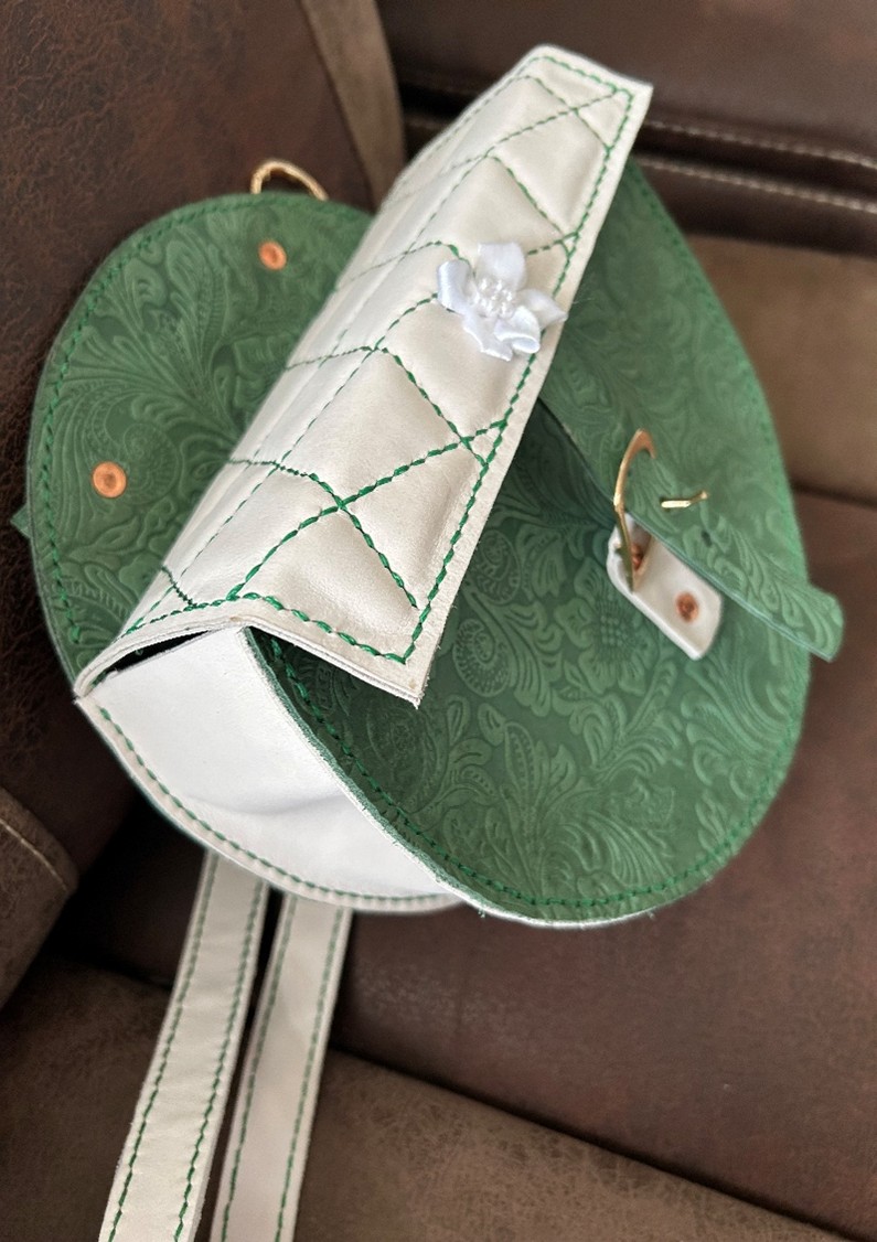 Circular Embossed Green and Cream Leather Handbag
