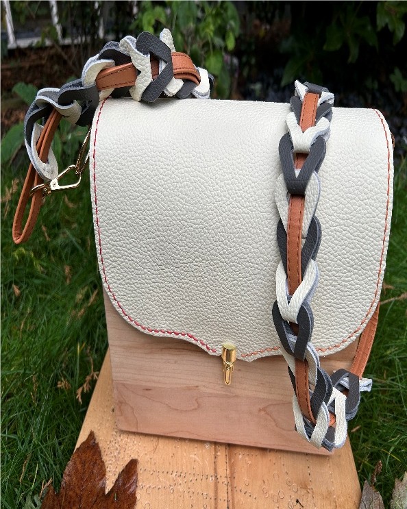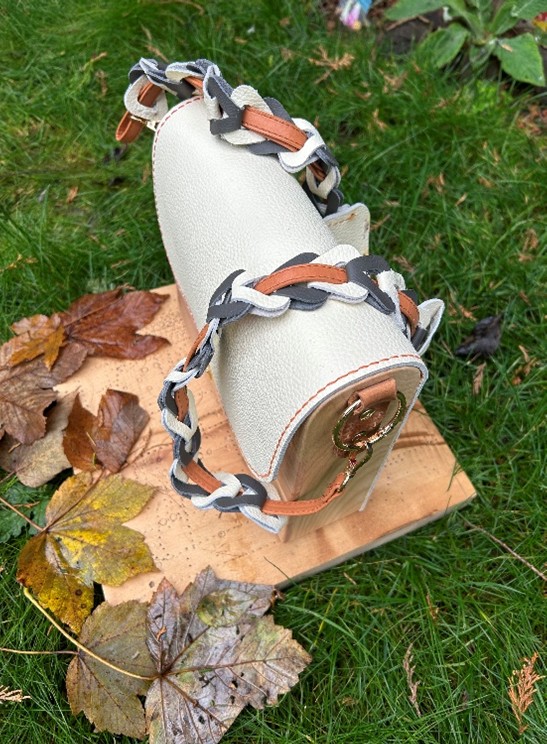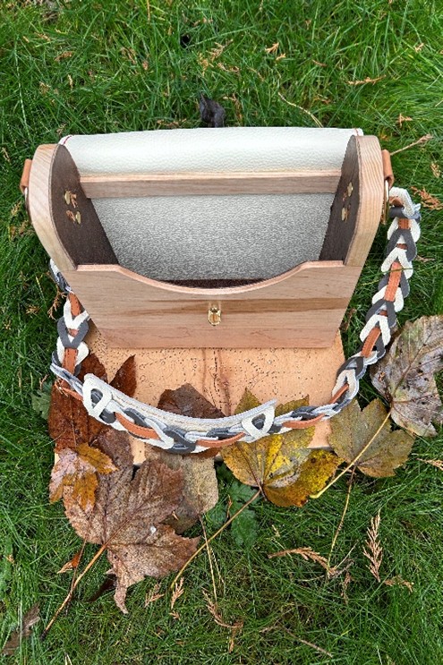 Heavy Solid Maple Wood & Cream Leather Bag