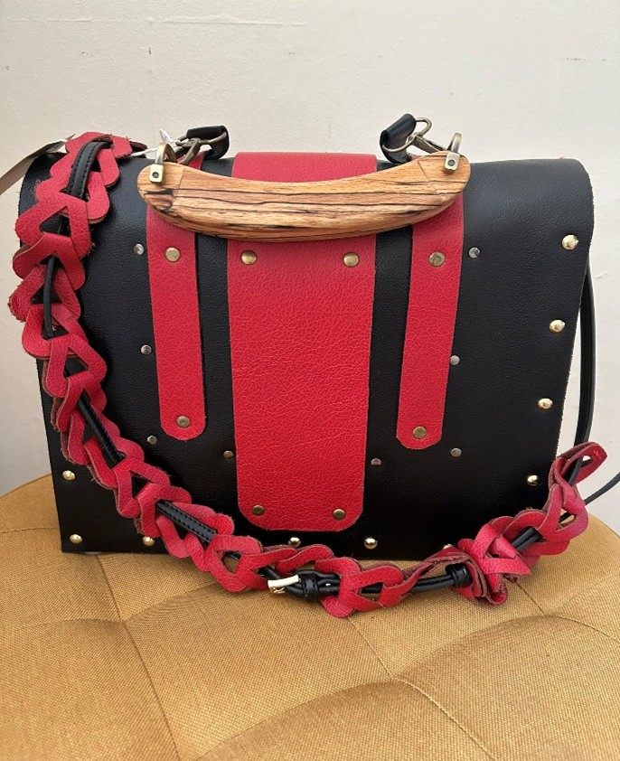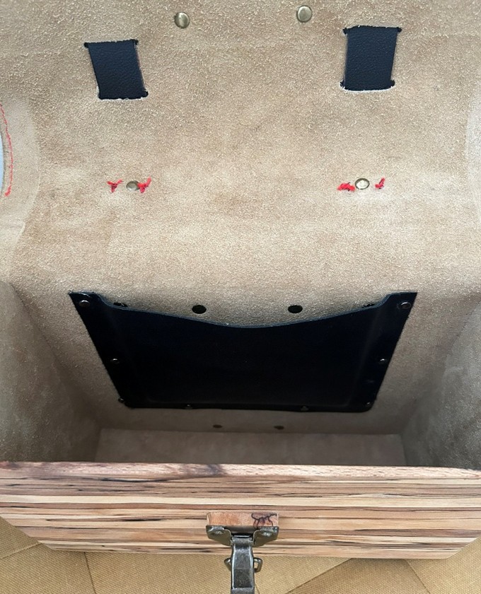 Large & Heavy Red & Black Leather 7 Spalted Beech Carry/Case Bag