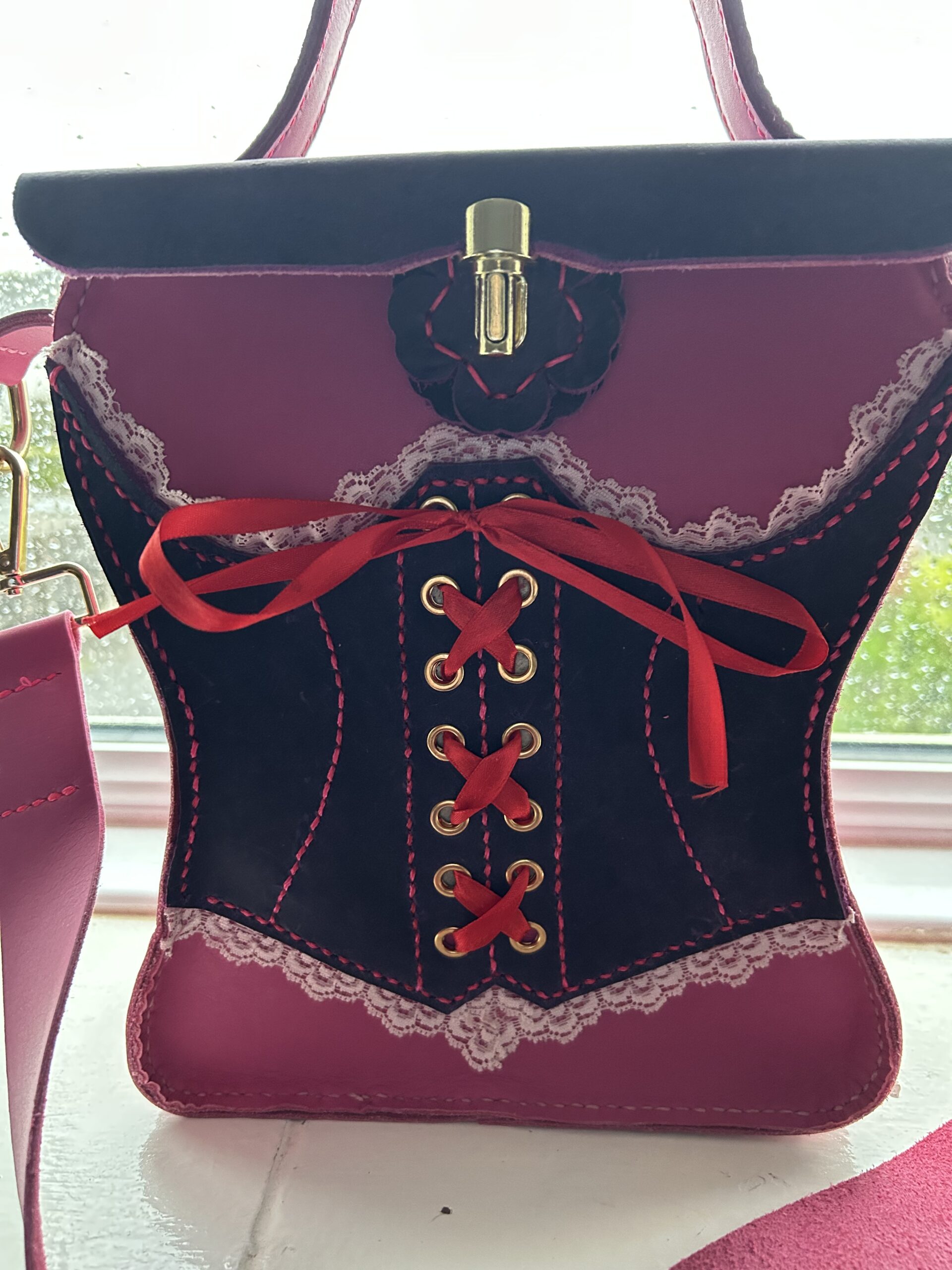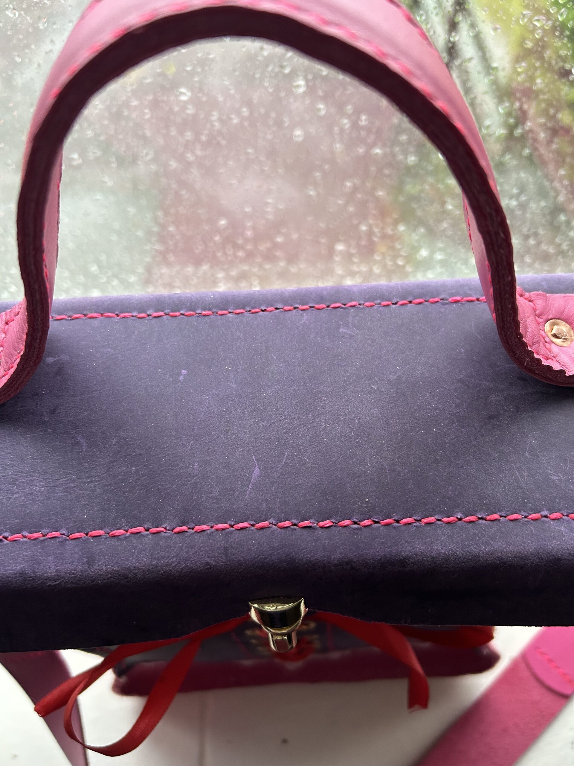 1 Only Unique (as always) Pink & Purple Quality Thick Leather Handbag