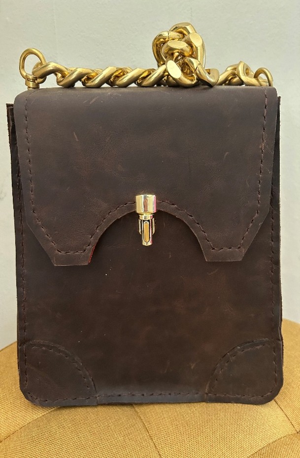 Heavy Multicolour Leather & Solid Mahogany Large Bag